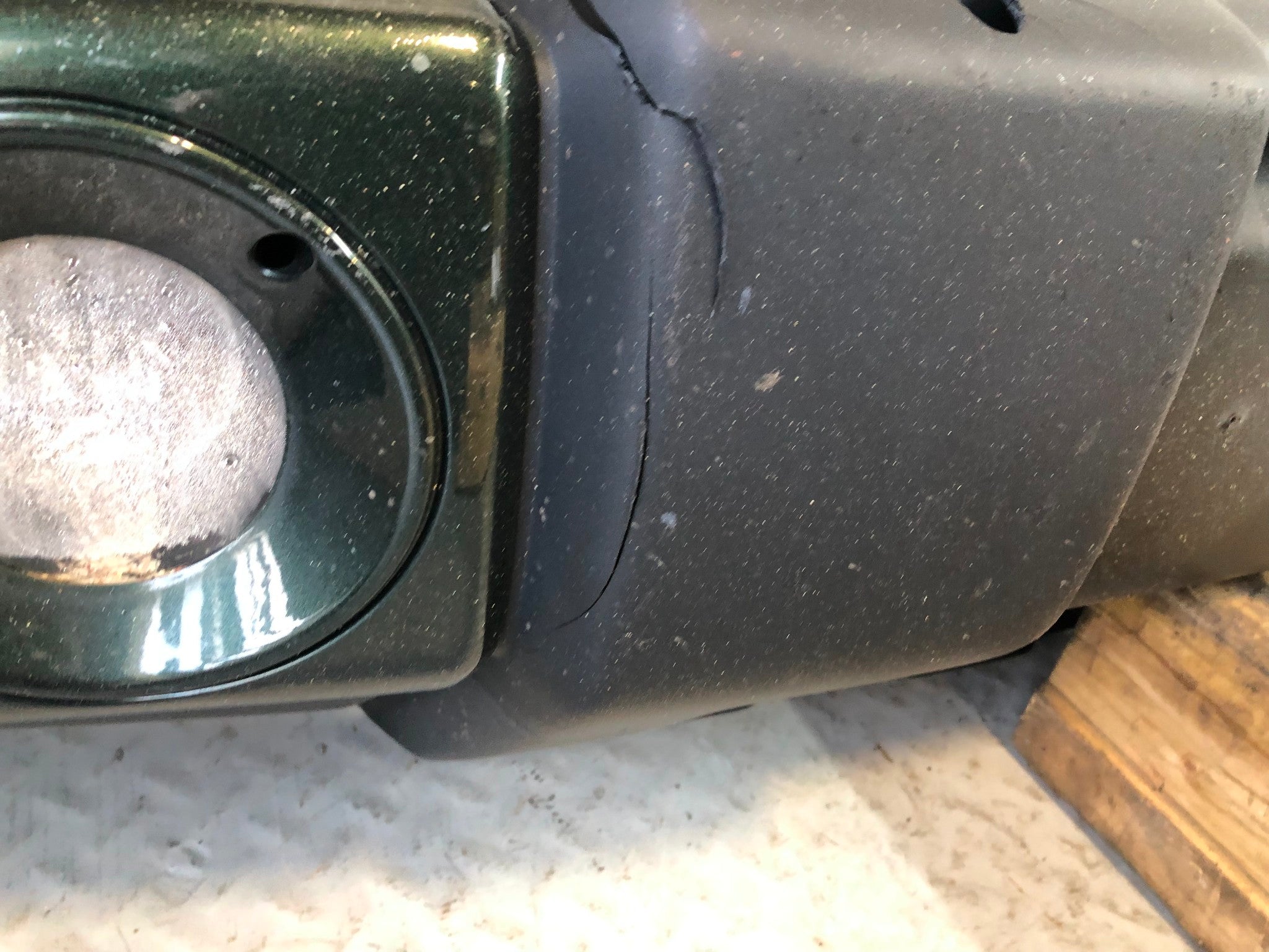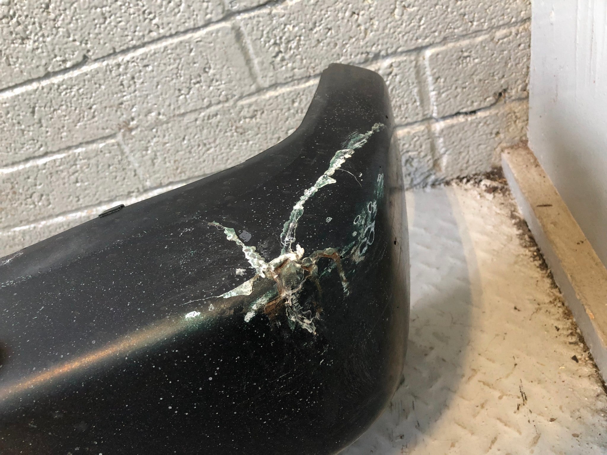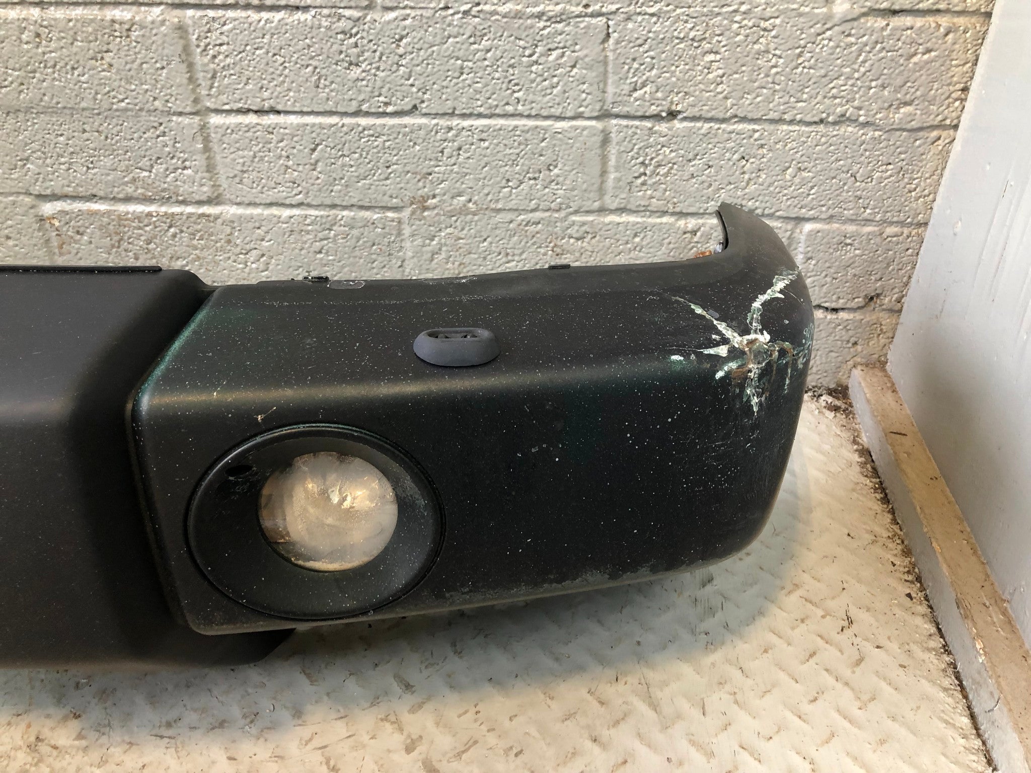 Please Note: There is a large crack and chunk missing on the top of the black plastic. The near side corner is heavily cracked and there are scratches and scuff on this bumper. Please view all images.