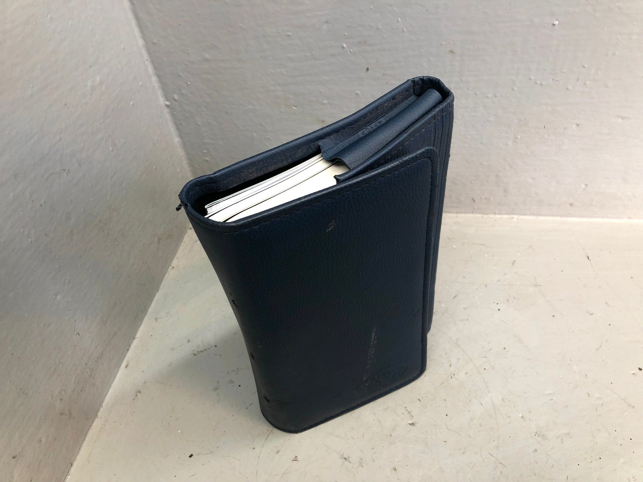Please note: The wallet and books show signs of age
