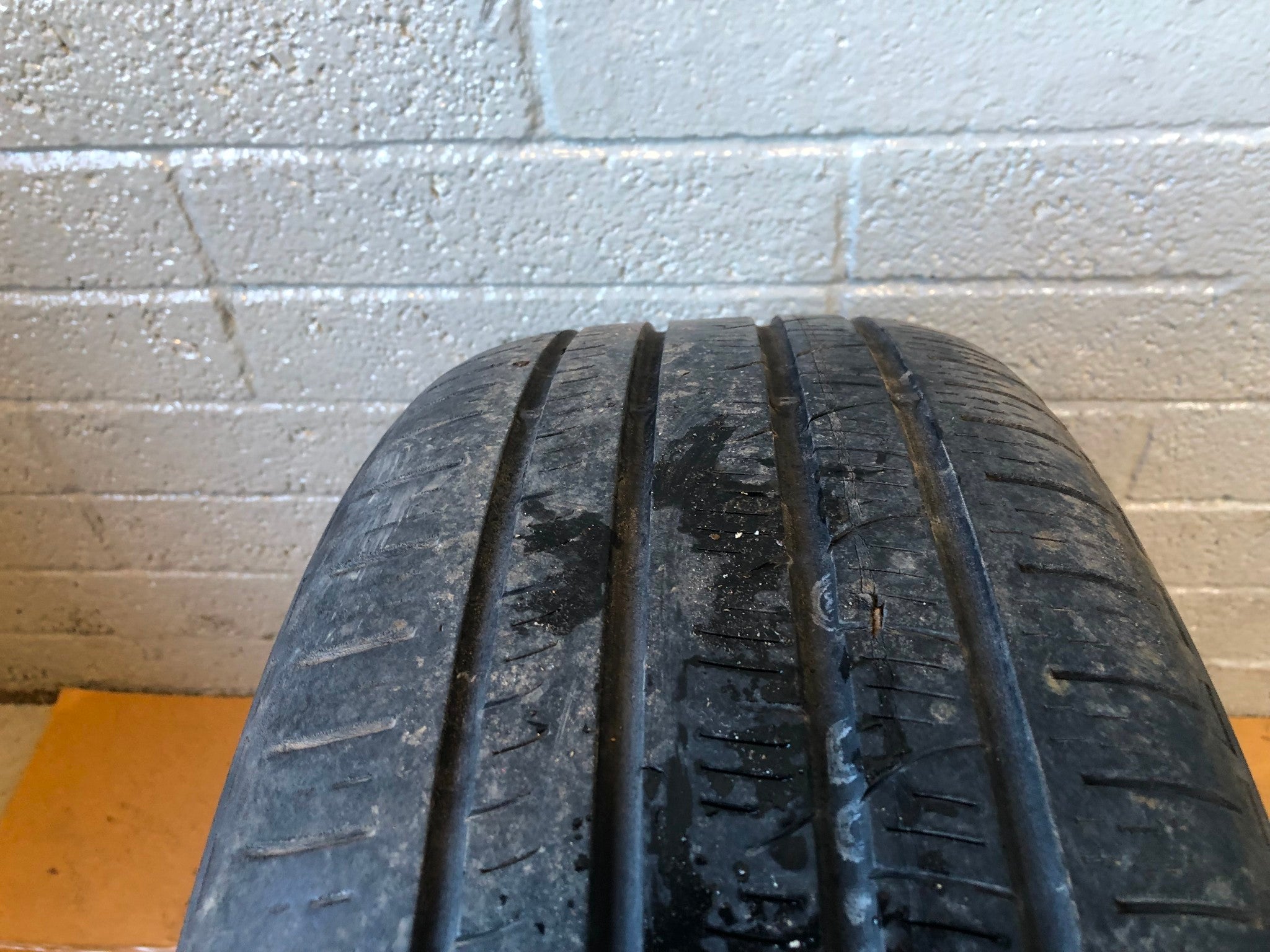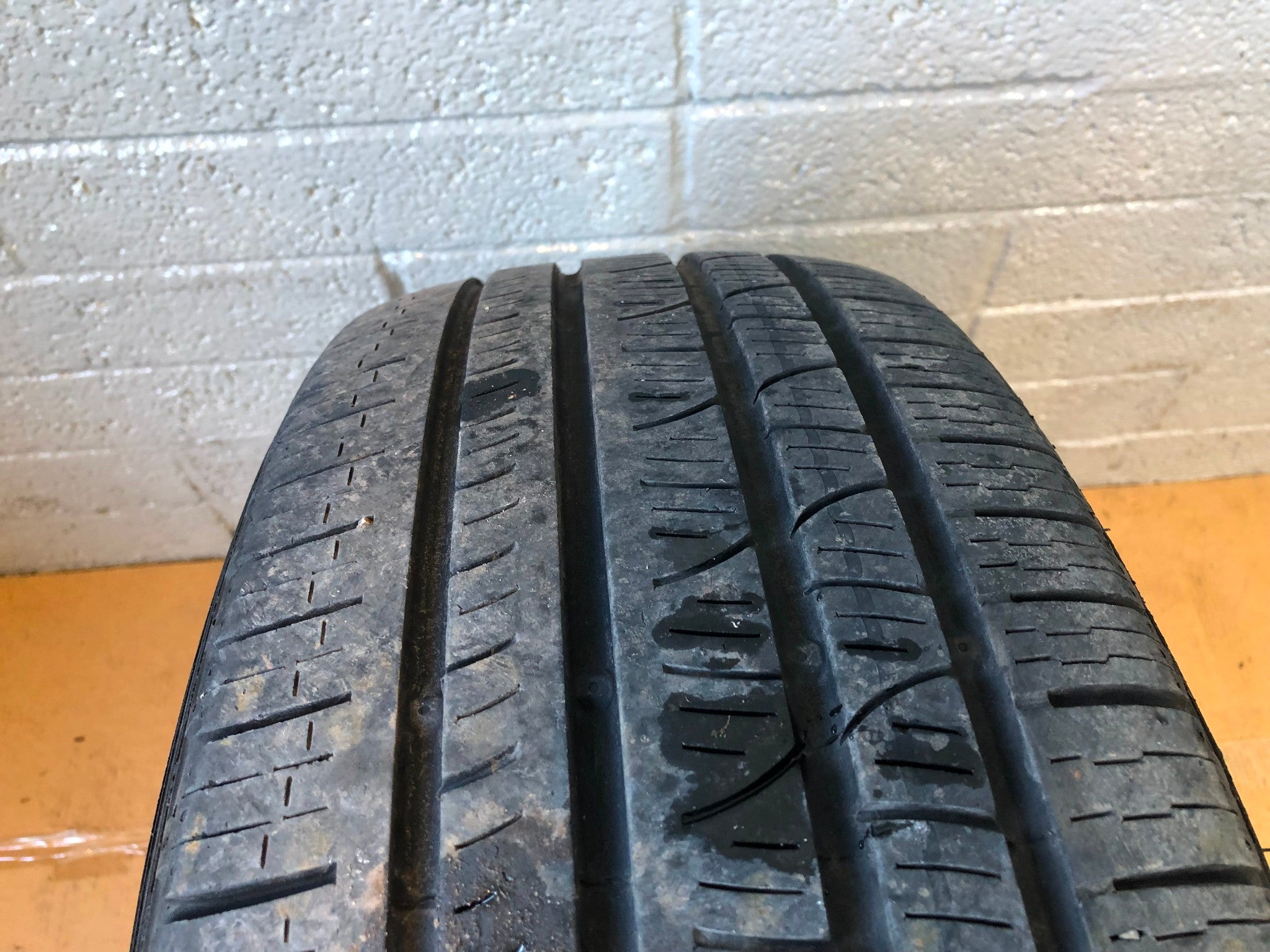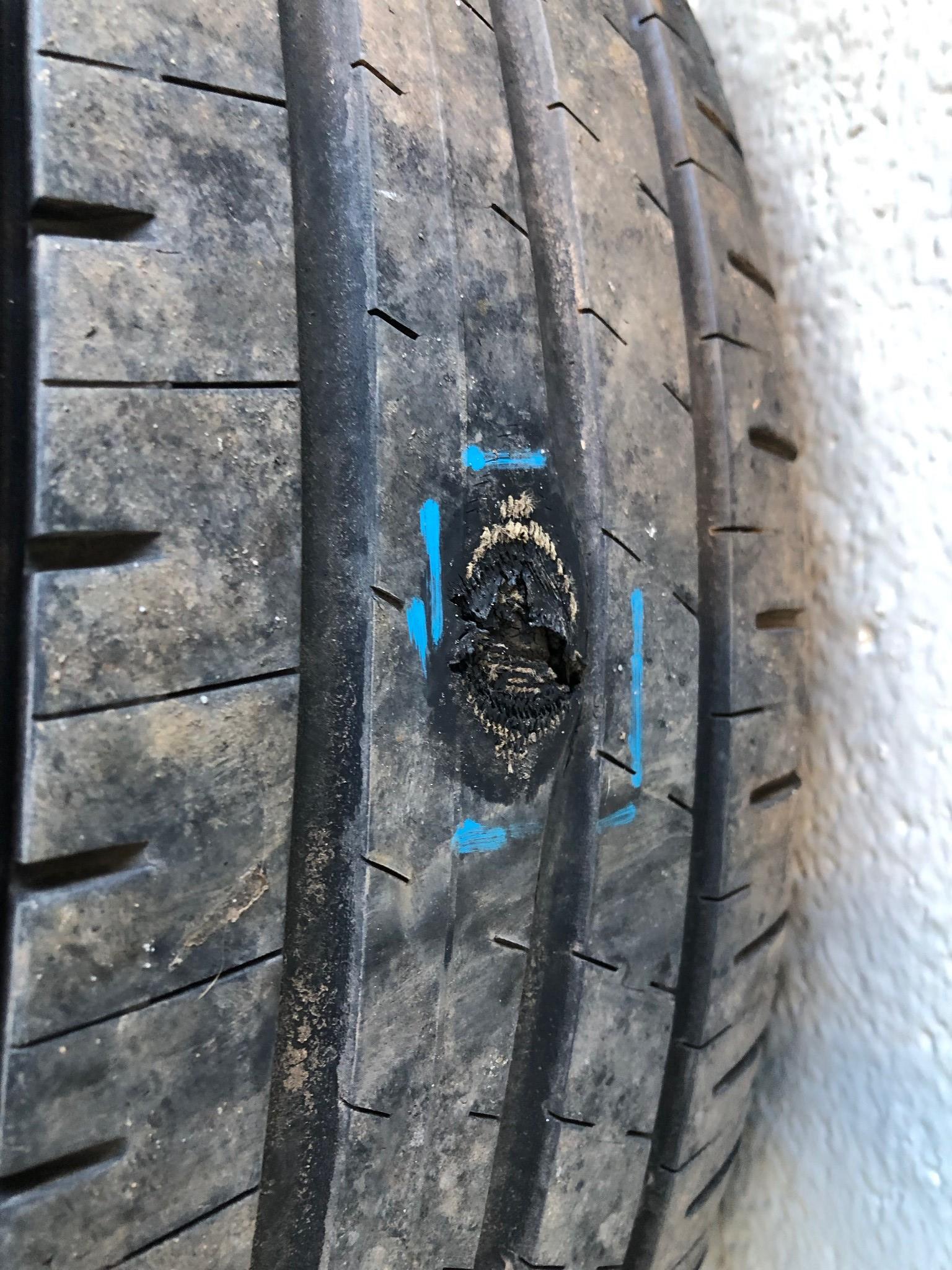 D: Pirelli - 0mm - Although there is plenty of tread on the tyre, there is a bulge which has worn through and rendered the tyre useless.