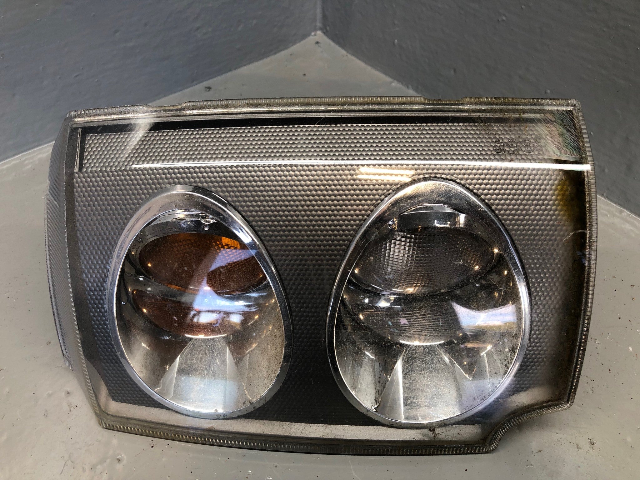 Please Note: There is some mld moisture build-up behind the lens, but this light will still fit and function.