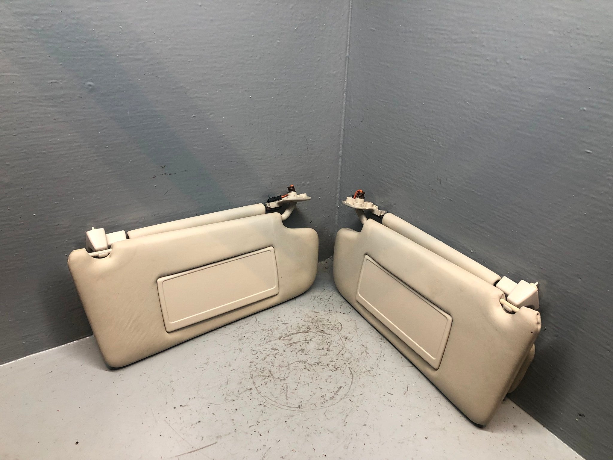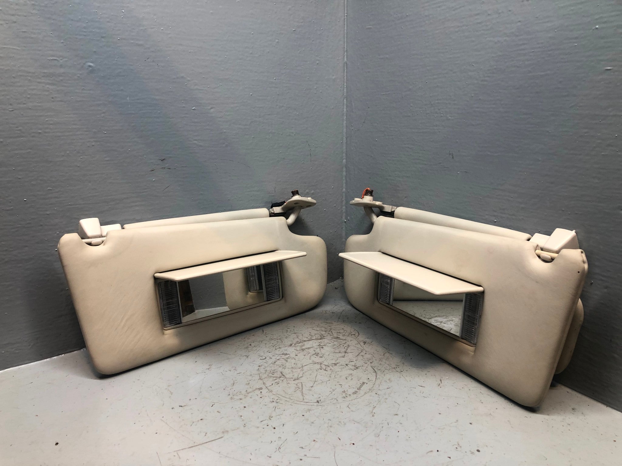 2005 - 2013 Range Rover L322 Pair of Genuine Overfinch Leather (very rare) Double Sun Visors with Mirrors and Lights in Ivory